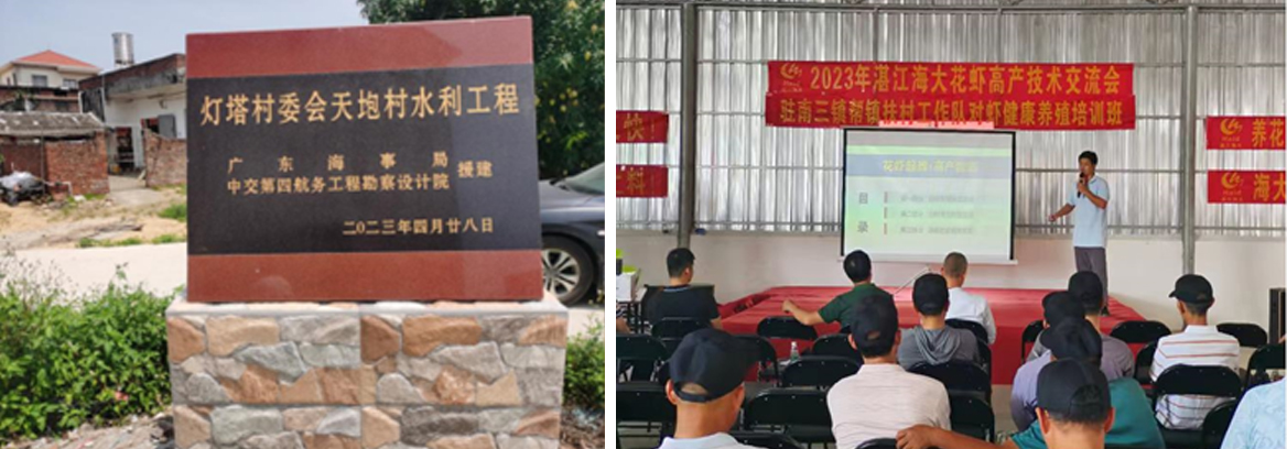 在南三镇湛江海大饲料服务站,一场由工作队和广东省农村科技特派员团队联合湛江海大饲料有限公司举办的对虾健康养殖技术培训班和花虾高产技术交流会开讲了。