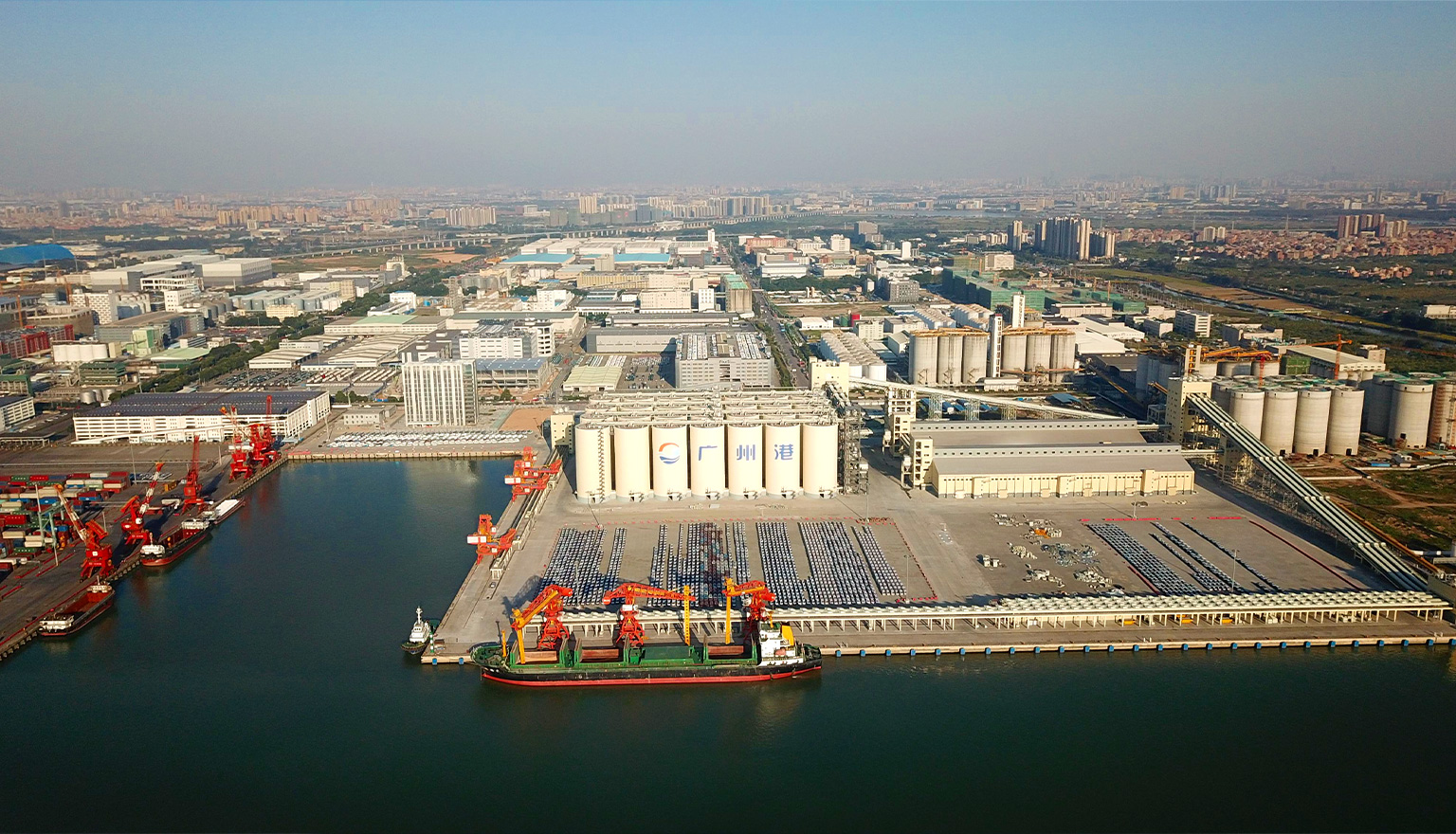 本工程位于广州港新沙港区,包含28座筒仓。外径为23.60米,筒仓高度50米,容量10000吨。漏斗采用混凝土圆锥漏斗,下挂半钢斗。