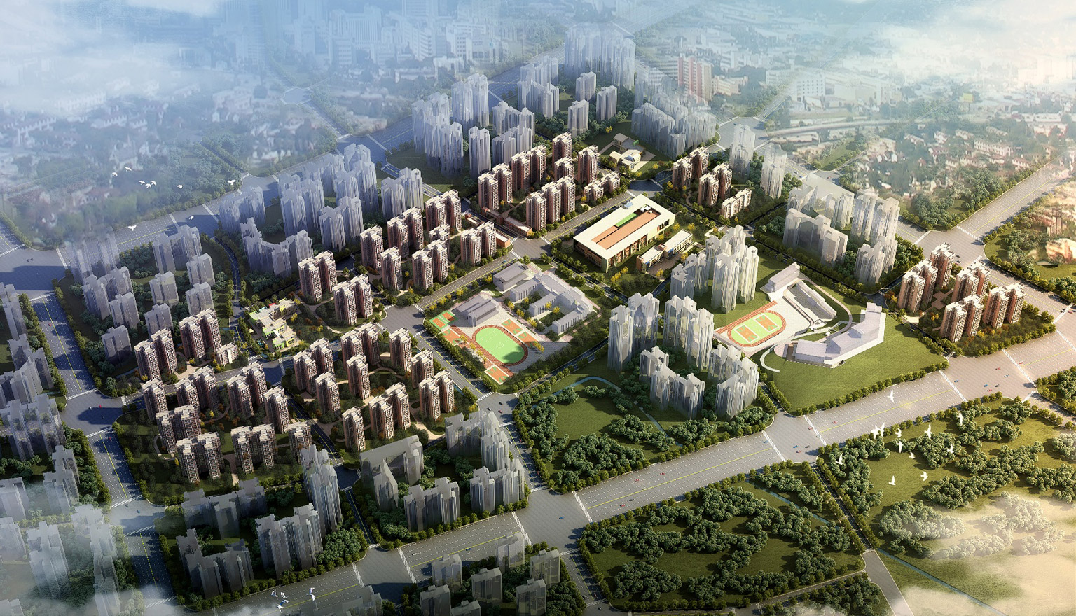 本项目用地面积共计75542.30平方米,共4个地块,总建筑面积约为323530.36平方米。