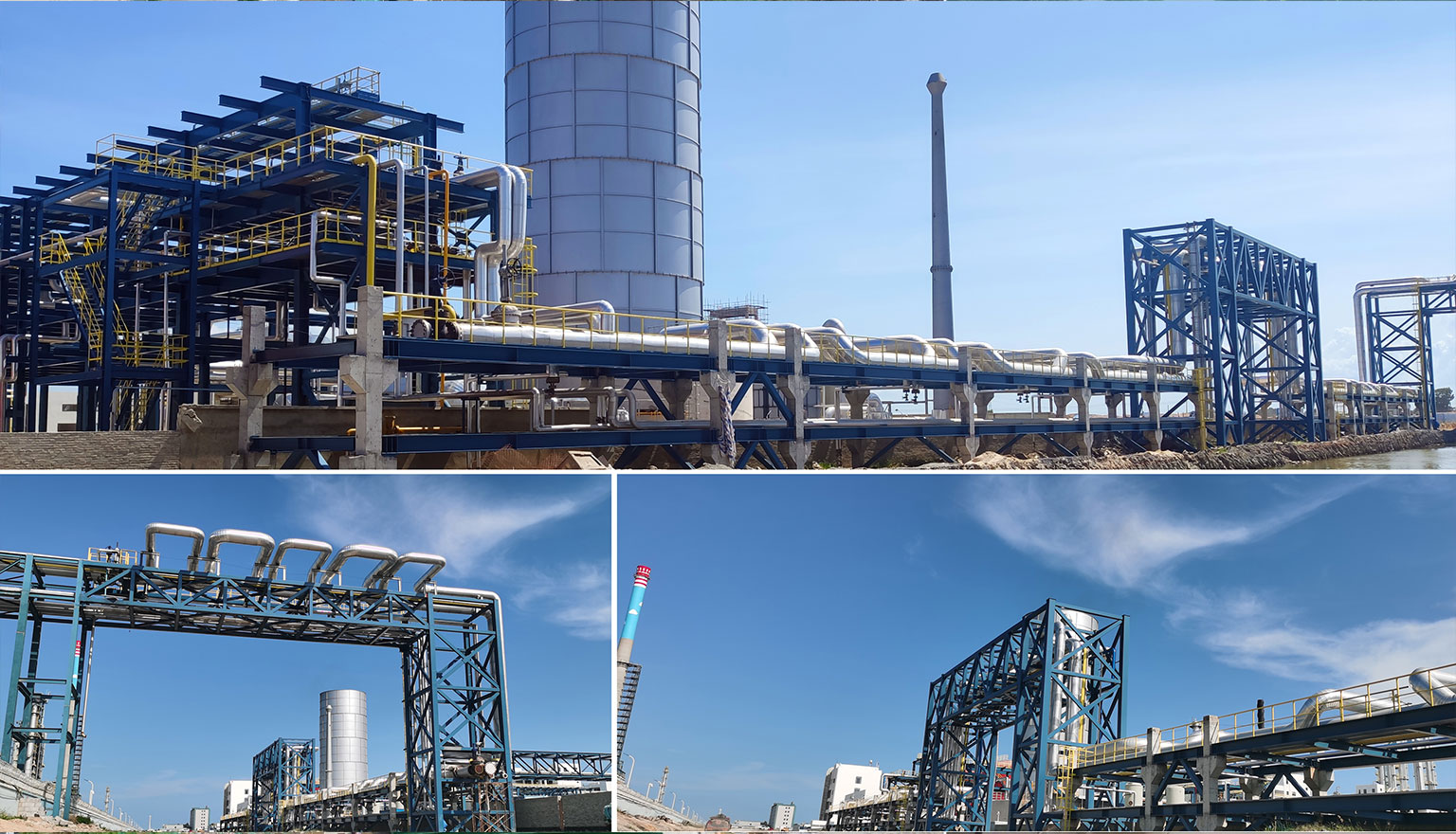 园区主线管廊,总长25.50千米,采用跨海域钢结构架设方式,地上管架形式。