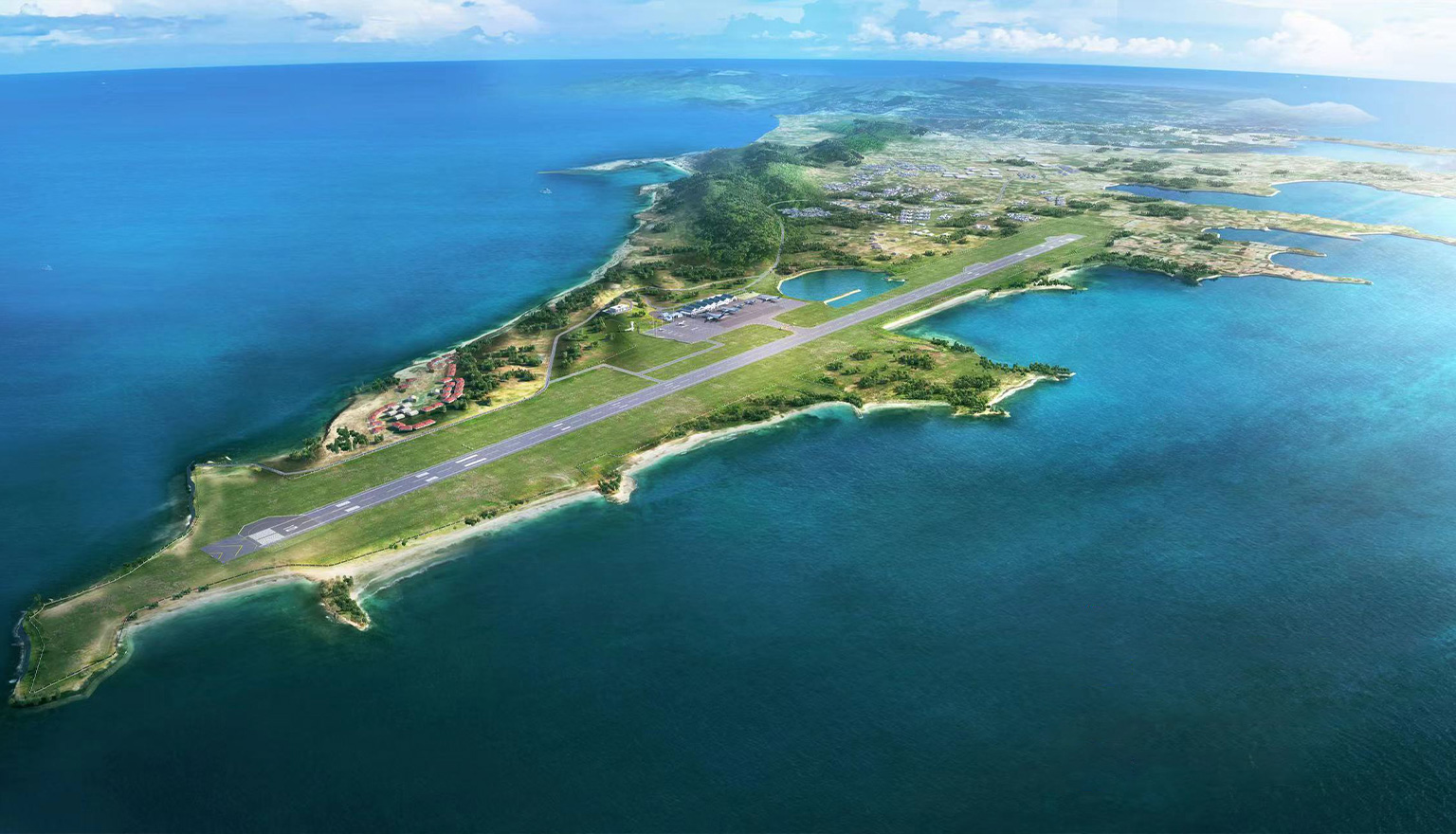 项目位于东加勒比海最南端,建设内容主要包含对原有2743米跑道道面修复、机场老旧设施更新、停机坪和滑行道扩建,新建 2 个登机桥及机场外围道路修复和重建应急中心办公楼。