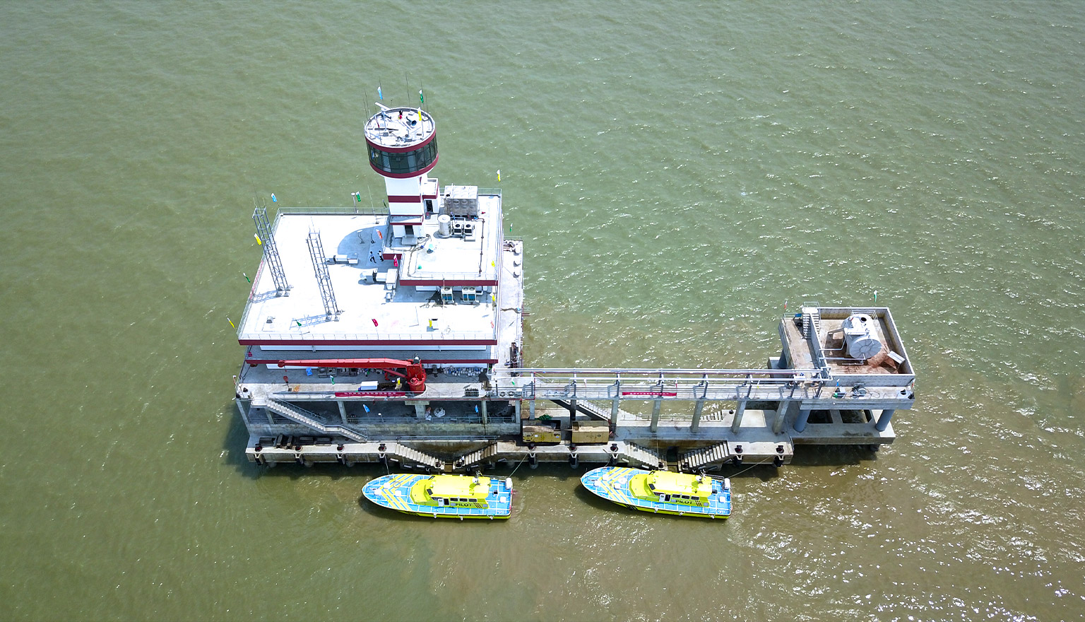项目位于仰光河入海口西南外海约20海里处,为外国船舶经仰光河入港提供引航服务。主要建设内容包括3个靠船泊位、设备间、办公住宿楼、信号塔、引航楼、油罐平台、人行通道等部分组成,属于新型海上建筑物。