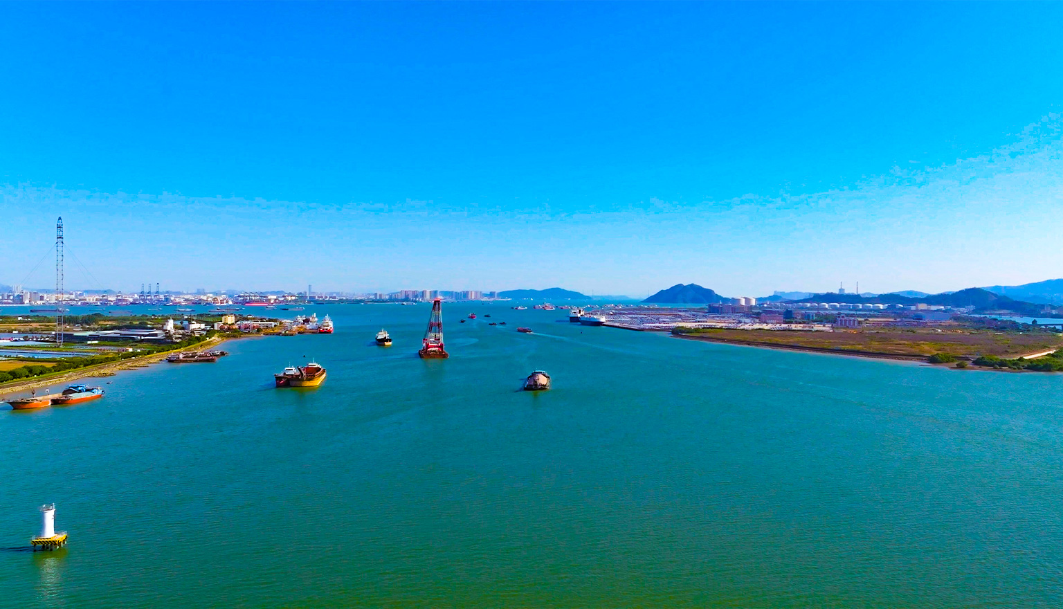 按满足20万吨级散货船乘潮单向通航、兼顾30万吨级油船不满载(吃水19.6米控制)乘潮单向通航的标准建设,航道总长12.2公里,在现有10万吨级航道基础上拓宽、浚深和延长,通航宽度350米(口门段加宽至384米),设计底高程-20.6米。