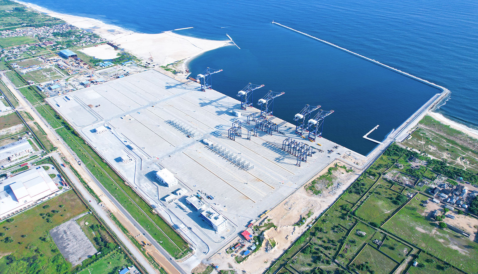 项目位于莱基自贸区内,主要建设内容为2个集装箱泊位、1个拖轮码头、2.7公里防波堤及护岸、港池及9公里航道、47万平方米后方陆域。可停靠1.8万标箱集装箱船,港口年设计吞吐量为120万TEU。