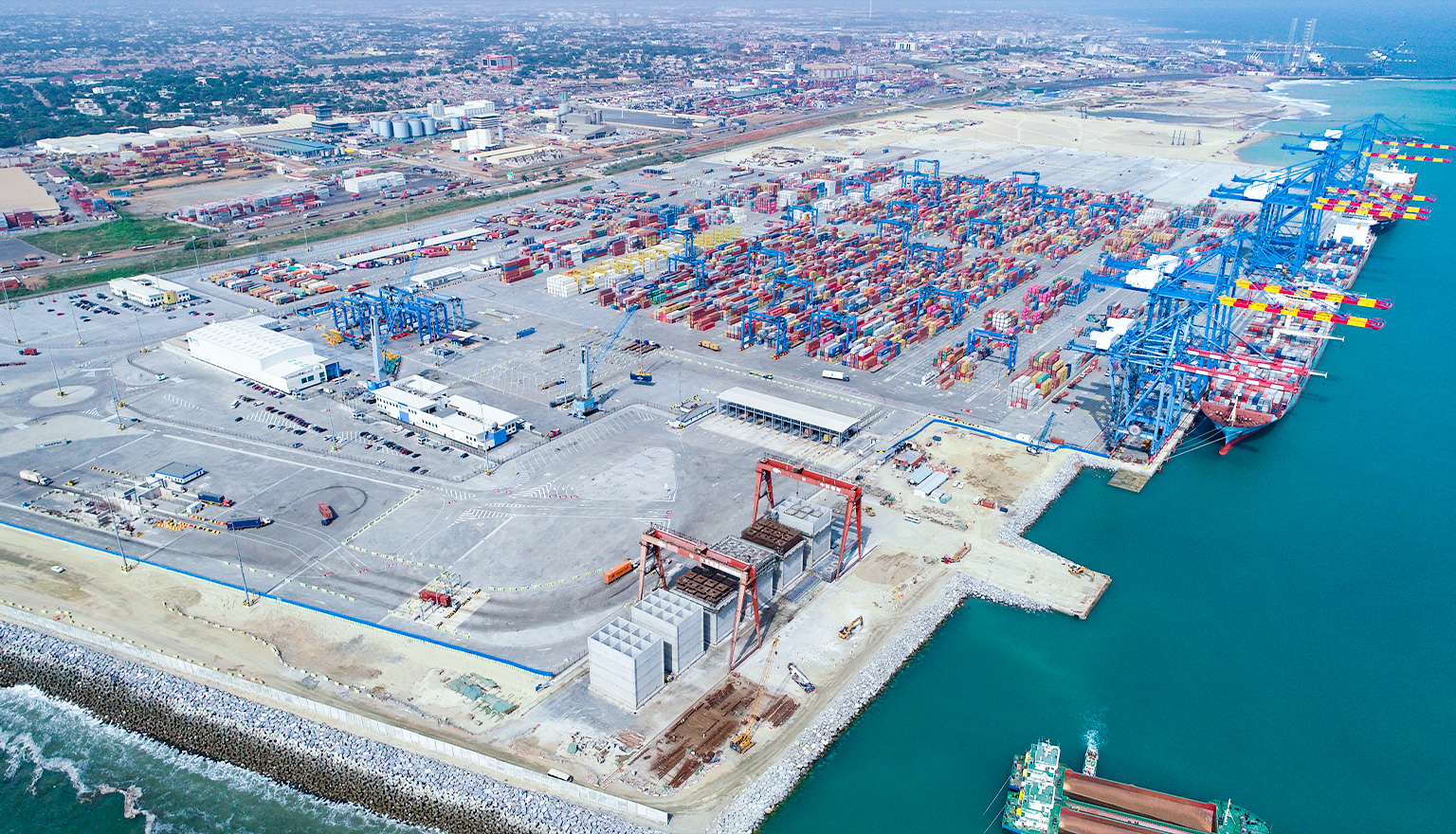 本项目位于非洲西部几内亚湾,是加纳目前最大的水工项目,主要建设内容包括长3558米的防波堤、长1400米的深水集装箱泊位、121公顷陆域吹填及地基处理、港池及基槽疏浚、护岸施工及附属设施等。荣获2022-2023年度第一批国家优质工程奖。