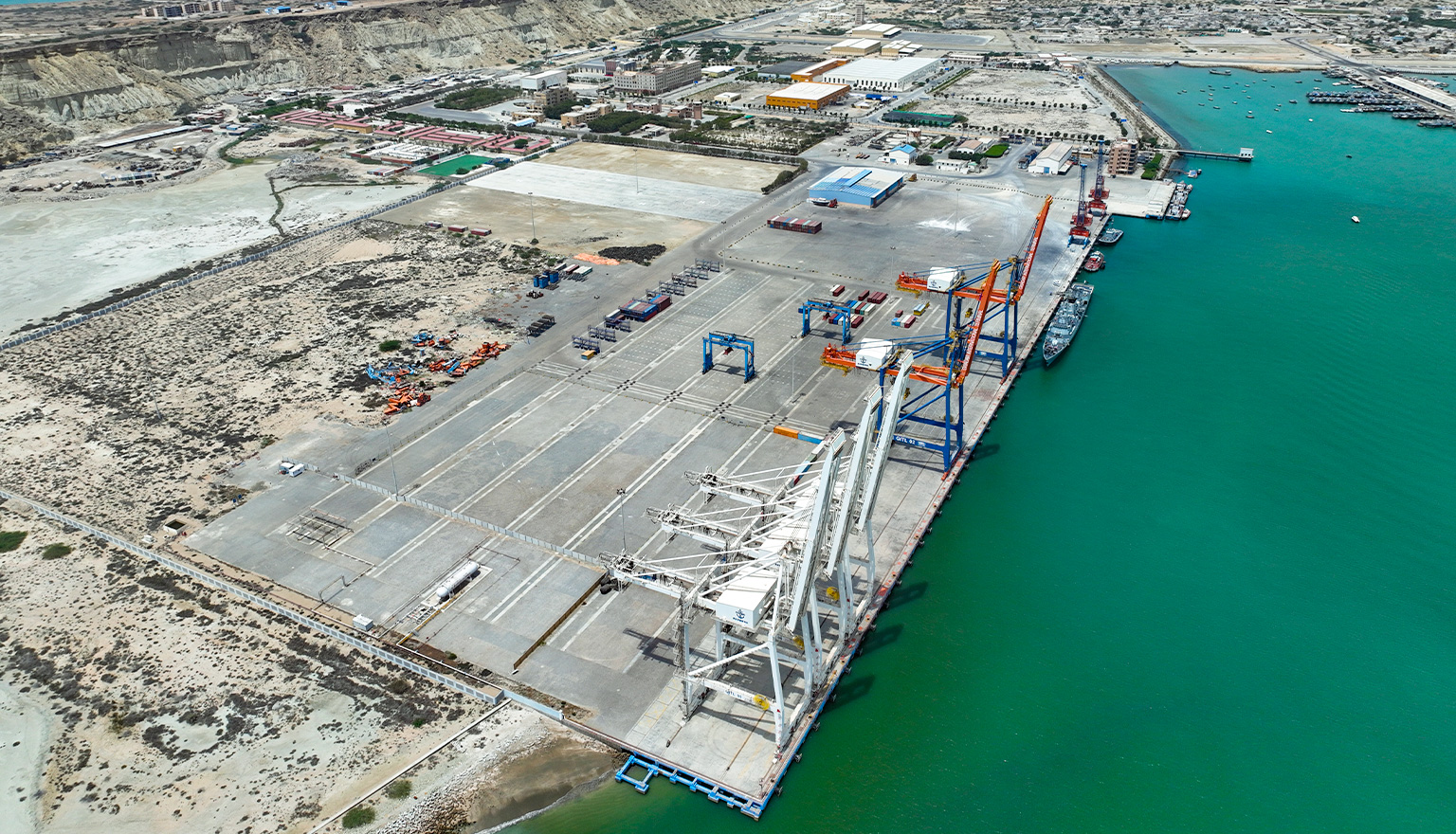 项目位于巴基斯坦俾路支省瓜达尔市,主要建设内容包括三个泊位兼顾滚装的多用途码头。设计吞吐量为10万TEU /年、杂货散粮72万吨/年。码头结构按5万吨集装箱船设计,总长度为702米,采用高桩预应力梁板结构。该项目是中国援建项目中规模最大、意义最深远的港口项目,荣获2009年中国建设工程鲁班奖(境外工程)。