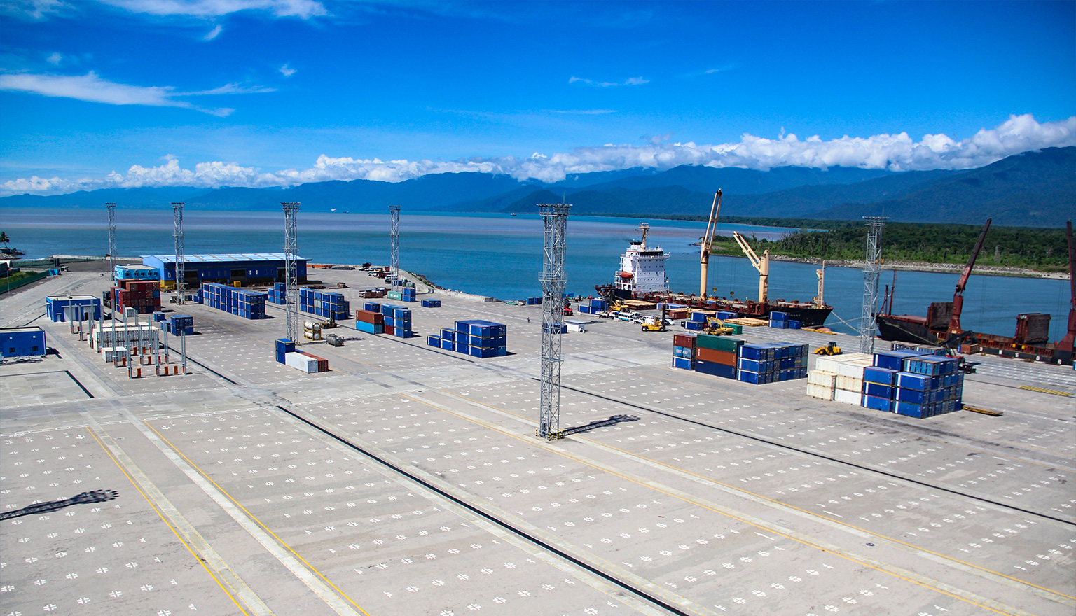 项目位于巴新第一大工业城市莱城。建设内容包括240米的5万吨级集装箱码头泊位岸线,港池疏浚至-14.0(远期-15.0),约2458米护岸,12.7公顷的港区陆域堆场及配套设施。